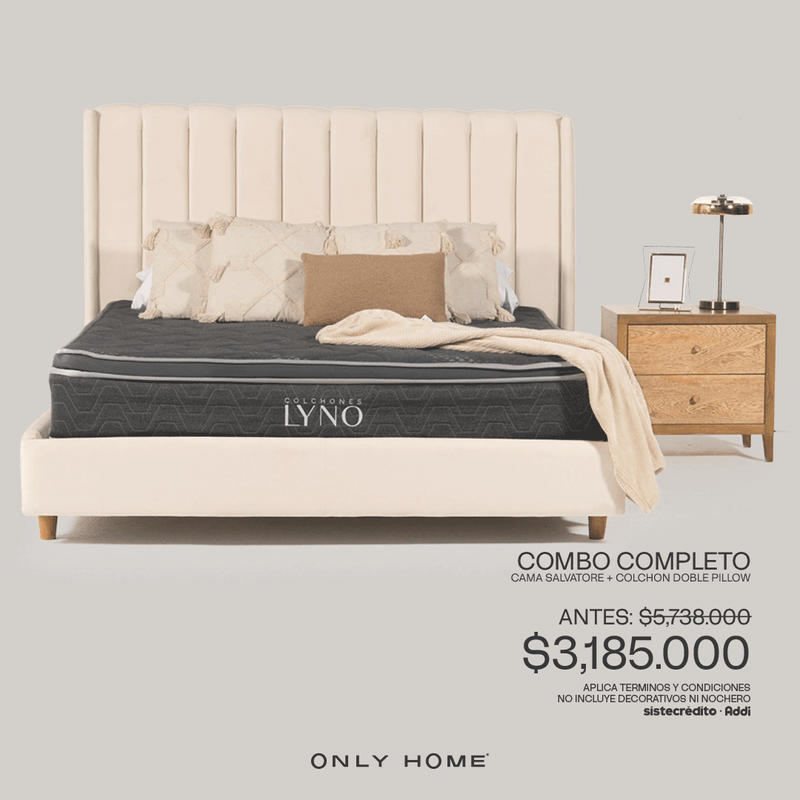Cama salvatore doble y un colchon doble, doble pillow LYNO
