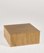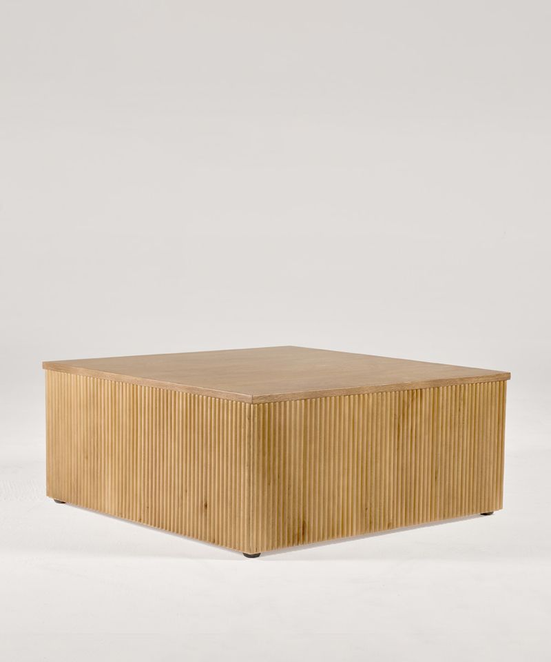 La mesa de centro Sion cuadrada en tono arena combina diseño contemporáneo y detalle artesanal en una pieza que aporta carácter y equilibrio visual al espacio. Su superficie está enmarcada con listones de madera ensamblados, un acabado distintivo que resalta la textura natural y la calidad de fabricación. Su formato cuadrado y proporciones armónicas la convierten en una opción funcional y decorativa, ideal para salas modernas, cálidas o de inspiración natural.